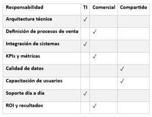 Claves a evitar: no involucrar a los equipos comerciales desde el diseño técnico, ignorar flujos de trabajo, descuidar la gobernanza de datos.