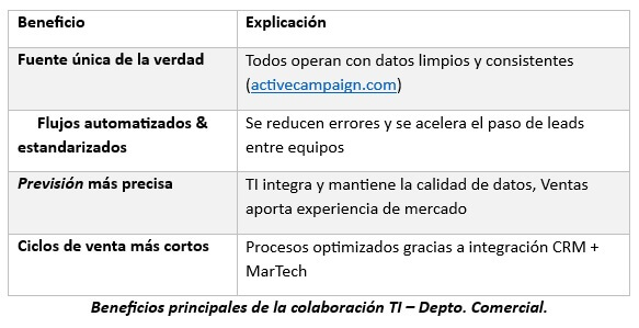 Colaboración TI-ventas-CRM: Evitando los Fracasos Más Comunes