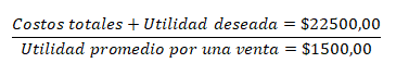 Entendiendo, por ejemplo, que una venta deja una utilidad promedio de $1500,00