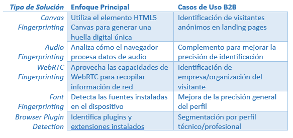 Para integrar efectivamente el fingerprinting digital en tu ecosistema de marketing B2B, considera estos componentes clave: