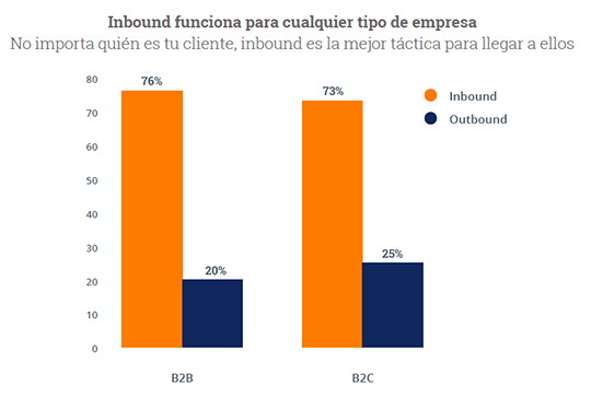 Según el estudio llevado a cabo por HubSpot a nivel mundial, “El Estado de Inbound marketing 2016” De los casi 1250 encuestados, el inbound tuvo un 75% de probabilidad de ser la elección principal como estrategia de marketing, mientras que el outbound obtuvo solo un 25% de probabilidad. Esta proporción de 3:1 siguió siendo constante en todos los tipos de empresas (B2B, B2C).