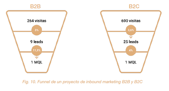 Las empresas orientadas al B2B consiguen generar MQL de forma más eficiente: de media, 1 MQL por cada 264 visitas.