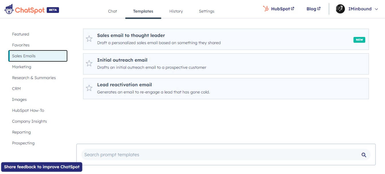 ChatSpot es un bot conversacional de gestión de relaciones con los clientes que los equipos de ventas, marketing y asistencia pueden conectar a HubSpot para aumentar su productividad.