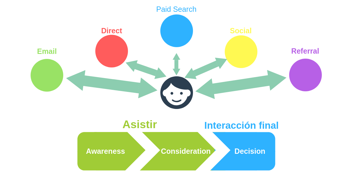 Por ejemplo, en el caso de un eCommerce, estaríamos hablando de los canales que fue visitando un usuario desde que accedió por primera vez a nuestra web hasta que, finalmente, realiza la compra de algún producto.