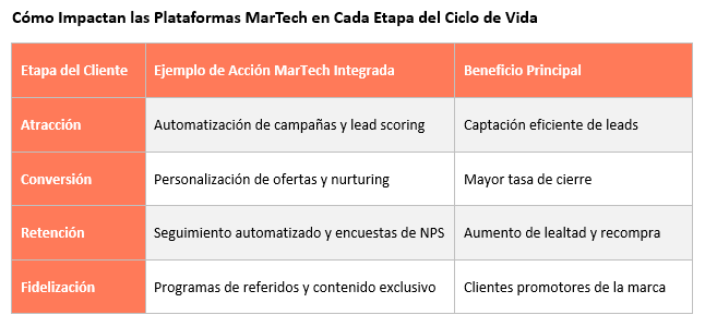 Cómo Impactan las Plataformas MarTech en Cada Etapa del Ciclo de Vida